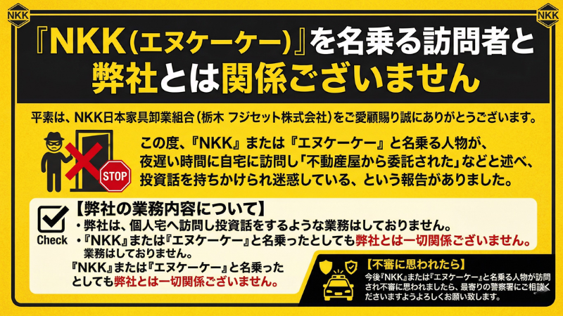 宇都宮に根付く「老舗家具問屋」としての確かな信頼 栃木フジセットは、栃木県宇都宮市で長年営業している老舗の家具問屋です。「NKK日本家具卸業組合宇都宮店」としての顔も持ち合わせており、一般家庭用の家具だけでなく、業務用家具や環境保護商品の卸売販売も幅広く手がけています。長年地域に密着して培われた「問屋」ならではの信頼感と実績をぜひご来店の上、お確かめください。
